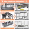 - Reinforced wire mesh prevents escapes and predator access; fir wood frame + asphalt roof offer weather resistance for outdoor/indoor use.