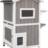 PETSCOSSET Outdoor Cat House: Two-Story Weatherproof Shelter with Jump Platforms & Visibility Window