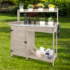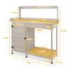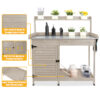 - 【Thoughtful Details】The top shelf of the potting benches for outside can house your planted flowers and tools. The raised tabletop edges can prevent the falling of items on the top. The drawer, lower slatted shelf, storage cabinet and top shelf of the planting table make you store a variety of tools more easily. 3 side hooks are perfect for keeping your favorite trowel, trencher or other tools in arm’s reach.