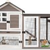 PETSCOSSET Indoor Rabbit Hutch: Multi-Level Bunny Haven with Weatherproof Roof & Expandable Design
