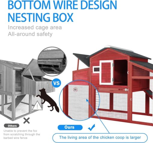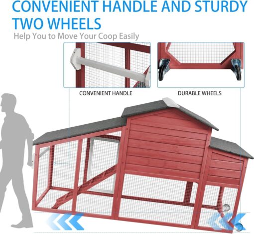 PETSCOSSET Mobile Chicken Coop: 2-Story Shelter with Wheels, Perch & Easy-Clean Run