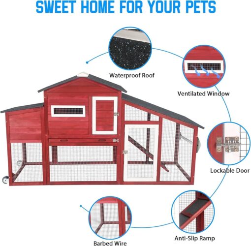 Upgrade your backyard farm or pet sanctuary! The PETSCOSSET Chicken Coop delivers a sturdy, mobile habitat for chickens, rabbits, or guinea pigs, blending farm-ready durability with pet-friendly convenience for indoor/outdoor use.