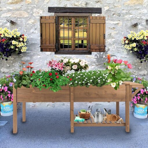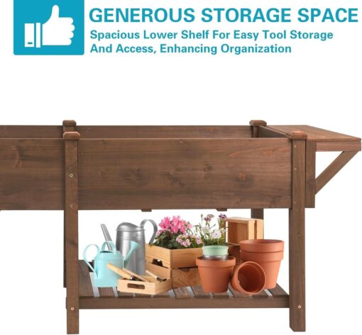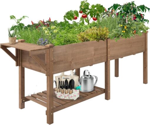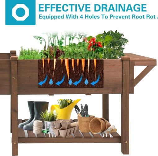PETSCOSSET Raised Garden Bed: Ergonomic Outdoor Planter with Storage & Drainage