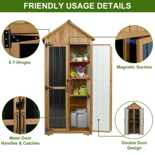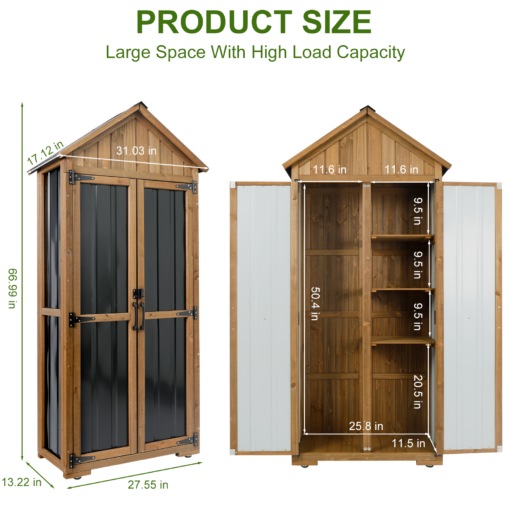 🌧️ Weatherproof & Long-Lasting: Sloping asphalt roof prevents water buildup and extends the cabinet’s lifespan; raised base keeps contents dry on damp ground.